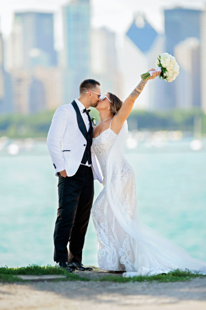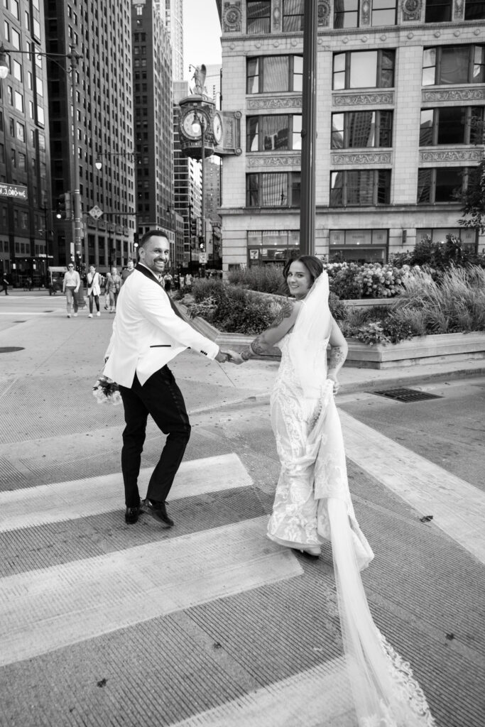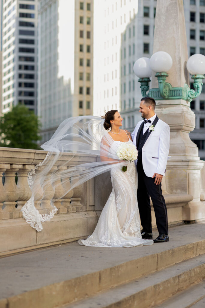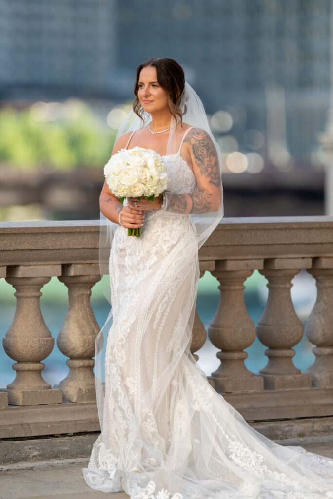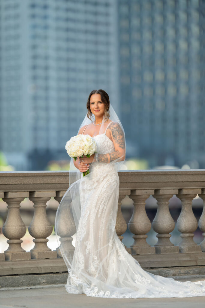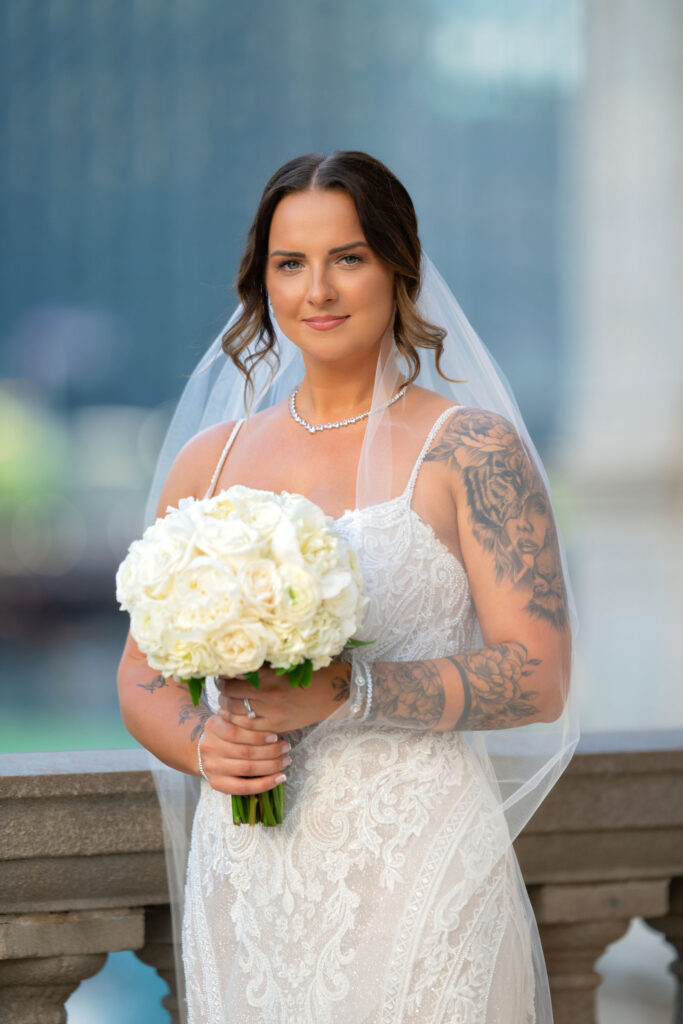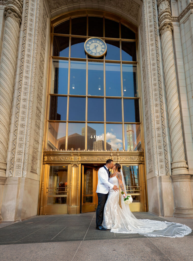 After the ceremony, we headed straight into downtown Chicago for portraits. A tight timeline, summer traffic, and city chaos — but somehow it all worked beautifully. The contrast of classic elegance against the urban backdrop gave us some of my favorite images of the day. Effortless, editorial, and timeless.