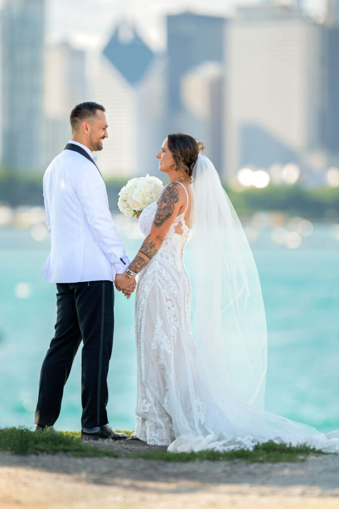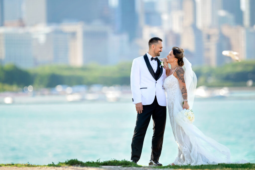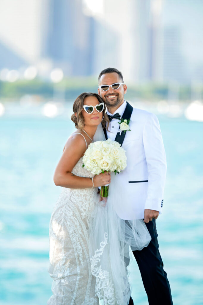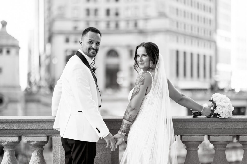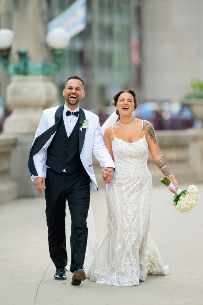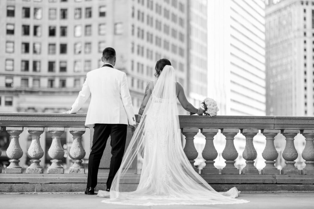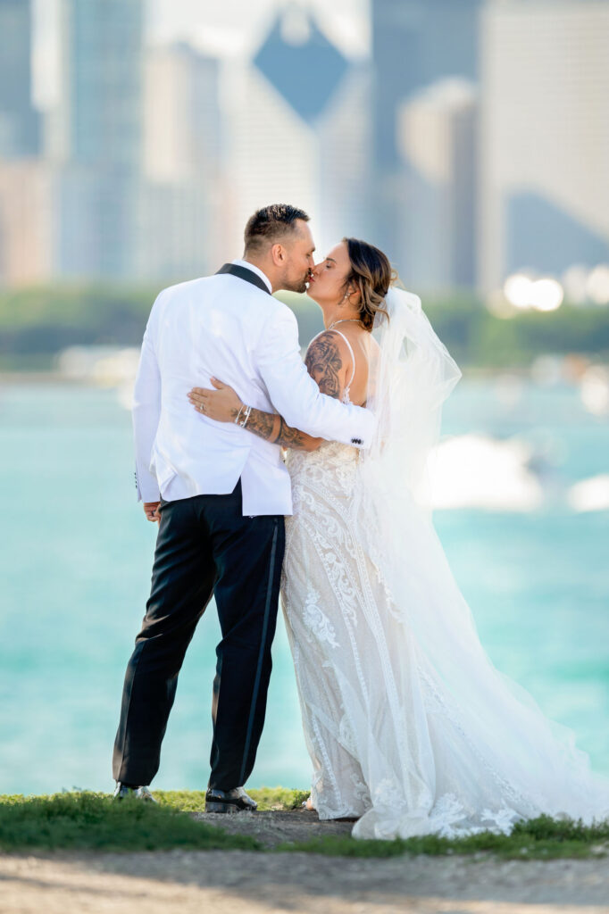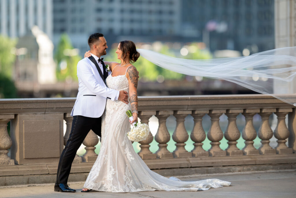 After the ceremony, we headed straight into downtown Chicago for portraits. A tight timeline, summer traffic, and city chaos — but somehow it all worked beautifully. The contrast of classic elegance against the urban backdrop gave us some of my favorite images of the day. Effortless, editorial, and timeless.